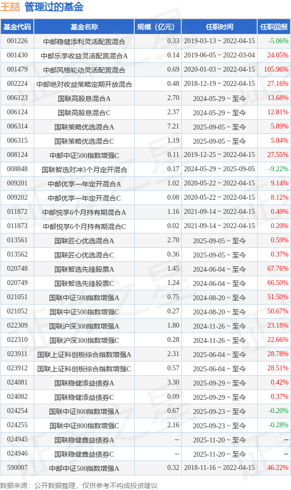 证券之星消息,2025年12月11日,国联中证港股通综合指数增强(025426)发布公告,增聘王喆为基金经理,任职日期自2025年12月11日起,变更后国联中证港股通综合指数增强(025426)的基...